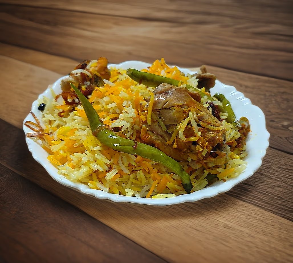 A tangy and flavorful delight! Chicken marinated in pickling spices is paired with aromatic rice for a bold and zesty biryani experience, served with refreshing Zeera Raita.