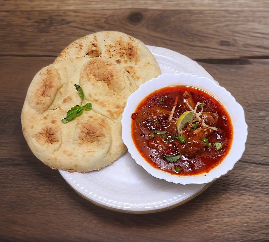Experience the delicate flavors of our Chicken Nihari, a light yet flavorful twist on the classic Mughlai delicacy. Tender chicken pieces are slow-cooked in a fragrant, spiced gravy until perfectly infused with rich, aromatic flavors. The silky texture of the nihari, enhanced with traditional spices, makes it a comforting and satisfying dish. Garnished with fresh coriander, julienned ginger, and a hint of lime, it pairs wonderfully with soft and puffy Khamiri Roti.